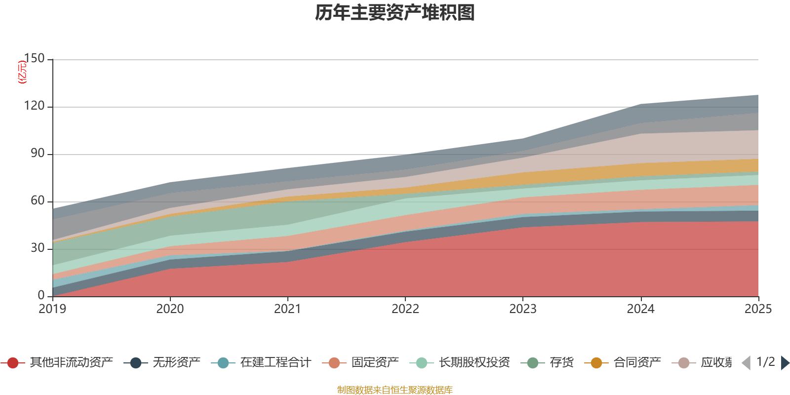 资产重大变化方面,截至2025年末,公司货币资金较上年末增加62.54%,占公司总资产比重上升3.06个百分点;在建工程合计较上年末增加155.24%,占公司总资产比重上升1.64个百分点;其他非流动资产较上年末增加0.74%,占公司总资产比重下降1.48个百分点;交易性金融资产合计较上年末减少100%,占公司总资产比重下降1.21个百分点。