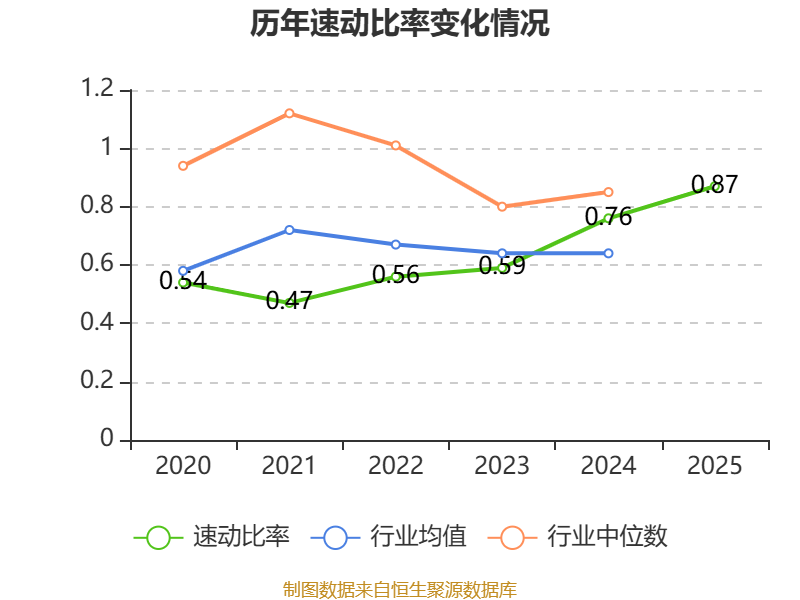 2025年,公司流动比率为0.91,速动比率为0.87。