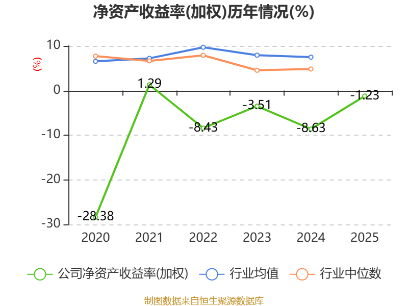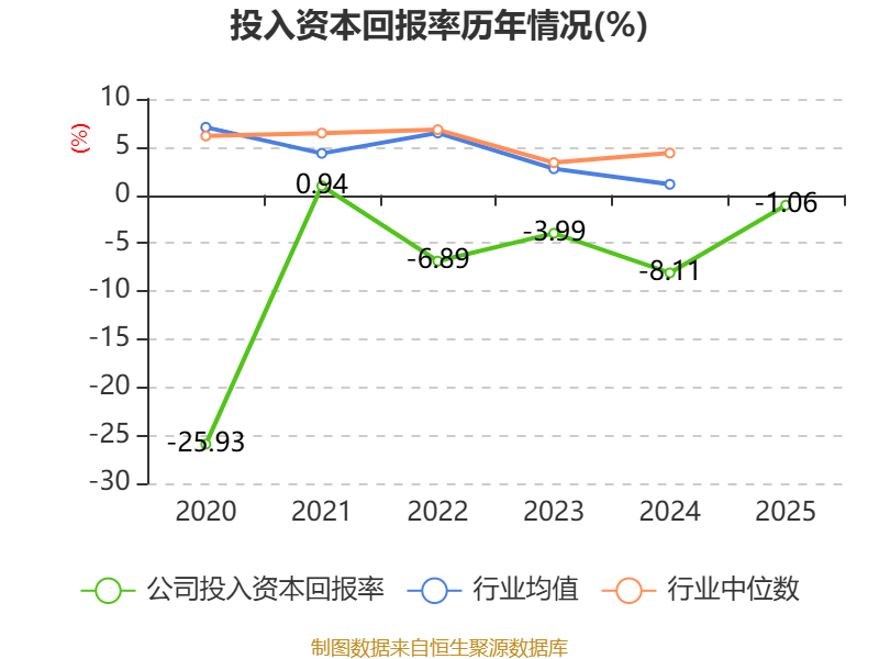 数据显示,2025年公司加权平均净资产收益率为-1.23%,较上年同期上升7.4个百分点。公司2025年投入资本回报率为-1.06%,较上年同期上升7.05个百分点。