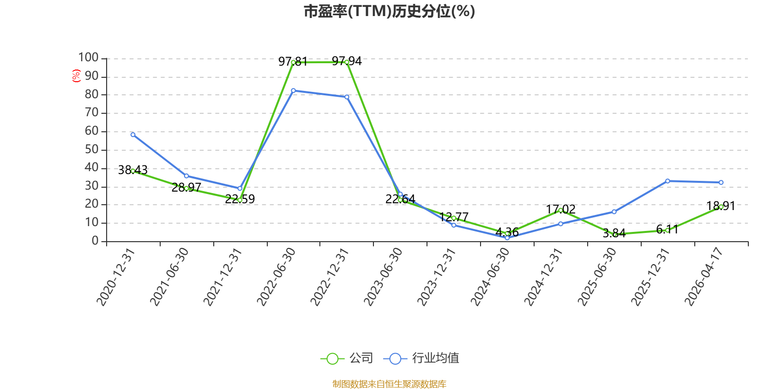 市盈率、市净率为负时,不显示当期分位数,会导致折线图中断。