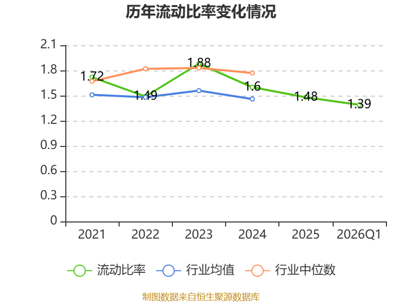 2026年第一季度,公司流动比率为1.39,速动比率为1.08。