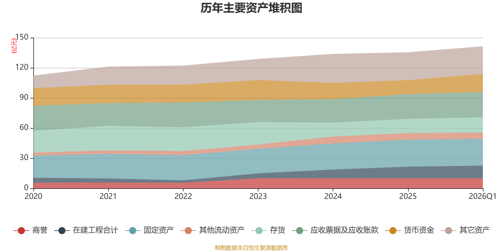 资产重大变化方面,截至2026年一季度末,公司货币资金较上年末增加29.11%,占公司总资产比重上升2.44个百分点;固定资产较上年末减少0.34%,占公司总资产比重下降0.9个百分点;其他流动资产较上年末减少6.01%,占公司总资产比重下降0.49个百分点;在建工程合计较上年末增加8.88%,占公司总资产比重上升0.37个百分点。