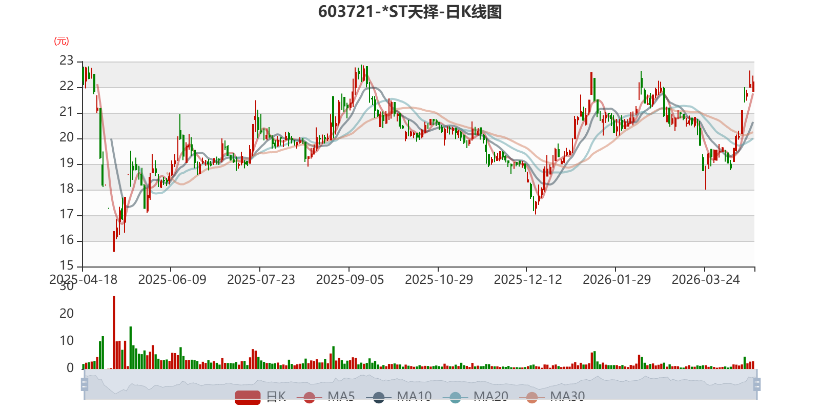 中证智能财讯 *ST天择(603721)4月18日披露2025年年度报告。2025年,公司实现营业总收入3.42亿元,同比下降7.65%;归母净利润2650.91万元,同比扭亏;扣非净利润1119.99万元,同比扭亏;经营活动产生的现金流量净额为8514.61万元,同比增长179.79%;报告期内,*ST天择基本每股收益为0.2元,加权平均净资产收益率为5.35%。公司2025年度分配预案为:拟向全体股东每10股派现0.8元(含税)。