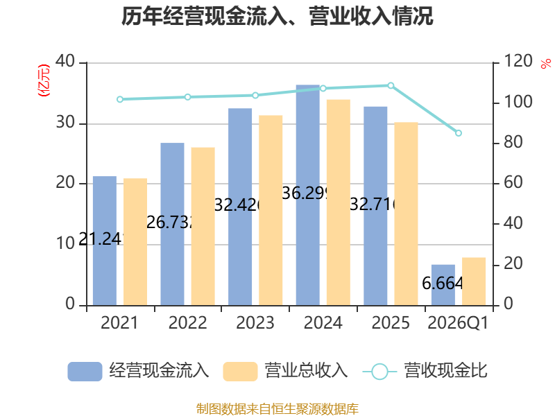 截至2026年一季度末,公司经营活动现金流净额为-1.88亿元,同比减少329.17万元;筹资活动现金流净额-2282.55万元,同比增加1250.95万元;投资活动现金流净额-3251.57万元,上年同期为632.45万元。