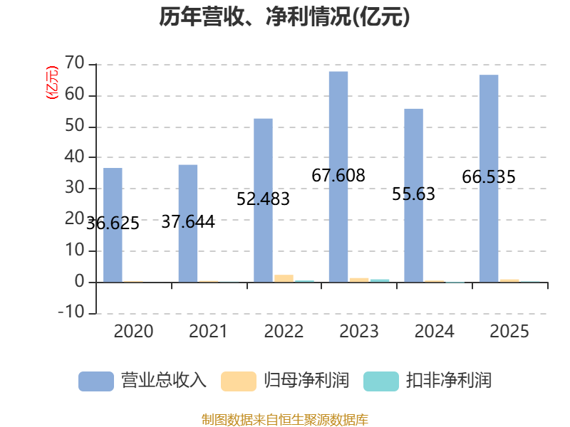 中证智能财讯农发种业(600313)4月18日披露2025年年度报告。2025年,公司实现营业总收入66.54亿元,同比增长19.60%;归母净利润8358.44万元,同比增长78.27%;扣非净利润2009.56万元,同比扭亏;经营活动产生的现金流量净额为3.02亿元,上年同期为-7658.3万元;报告期内,农发种业基本每股收益为0.08元,加权平均净资产收益率为4.28%。公司2025年度分配预案为:拟向全体股东每10股派现0.09元(含税)。