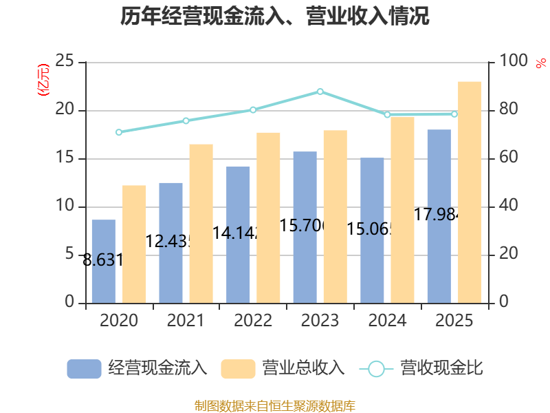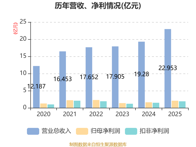 中证智能财讯海星股份(603115)4月18日披露2025年年度报告。2025年,公司实现营业总收入22.95亿元,同比增长19.05%;归母净利润2.06亿元,同比增长28.17%;扣非净利润1.89亿元,同比增长28.64%;经营活动产生的现金流量净额为1.29亿元,同比增长110.49%;报告期内,海星股份基本每股收益为0.86元,加权平均净资产收益率为9.98%。公司2025年度分配预案为:拟向全体股东每10股派现6元(含税)。