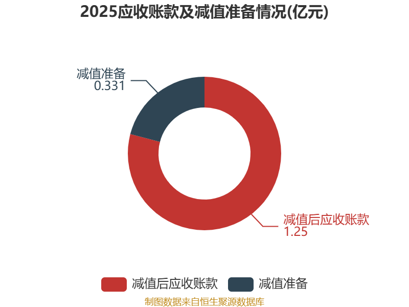 从应收账款账龄结构来看,截至2025年末,公司账龄在1年以内的应收账款余额为1.25亿元,较上年末下降3408.01万元,占应收账款总额比例为79.24%,较上年末下降4.27个百分点。