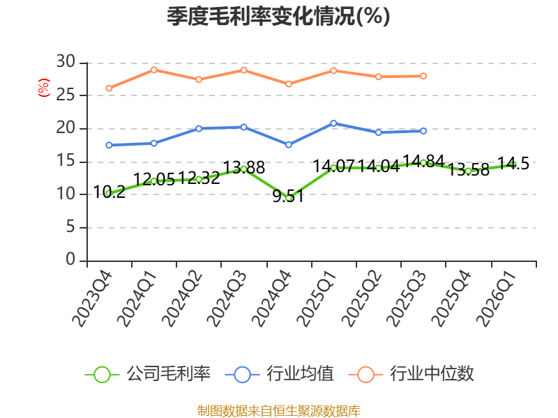 资产重大变化方面,截至2026年一季度末,公司一年内到期的非流动资产较上年末减少45.07%,占公司总资产比重下降5.68个百分点;存货较上年末增加23.77%,占公司总资产比重上升3.29个百分点;货币资金较上年末增加100.82%,占公司总资产比重上升3.1个百分点;应收票据及应收账款较上年末增加11.63%,占公司总资产比重上升0.84个百分点。