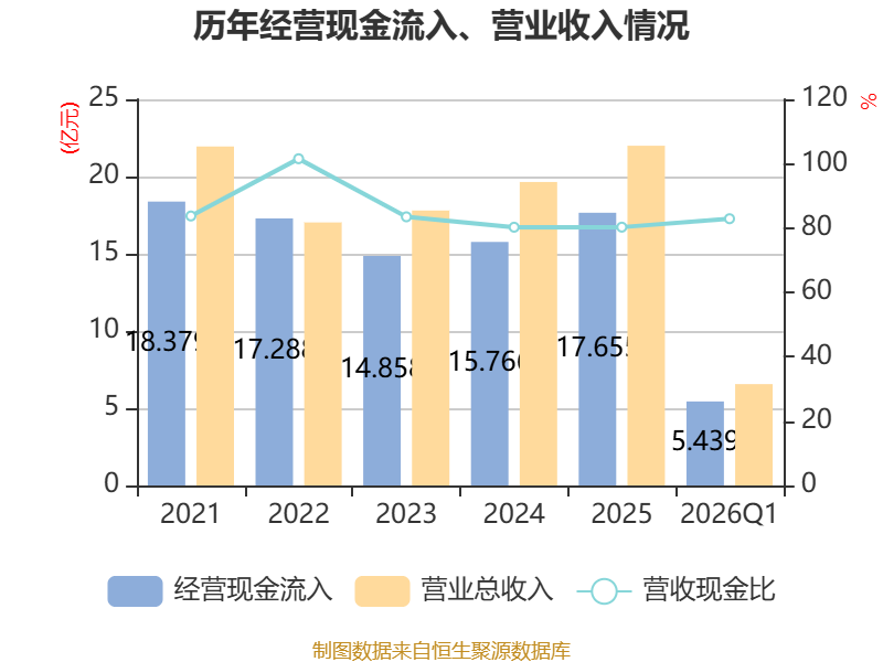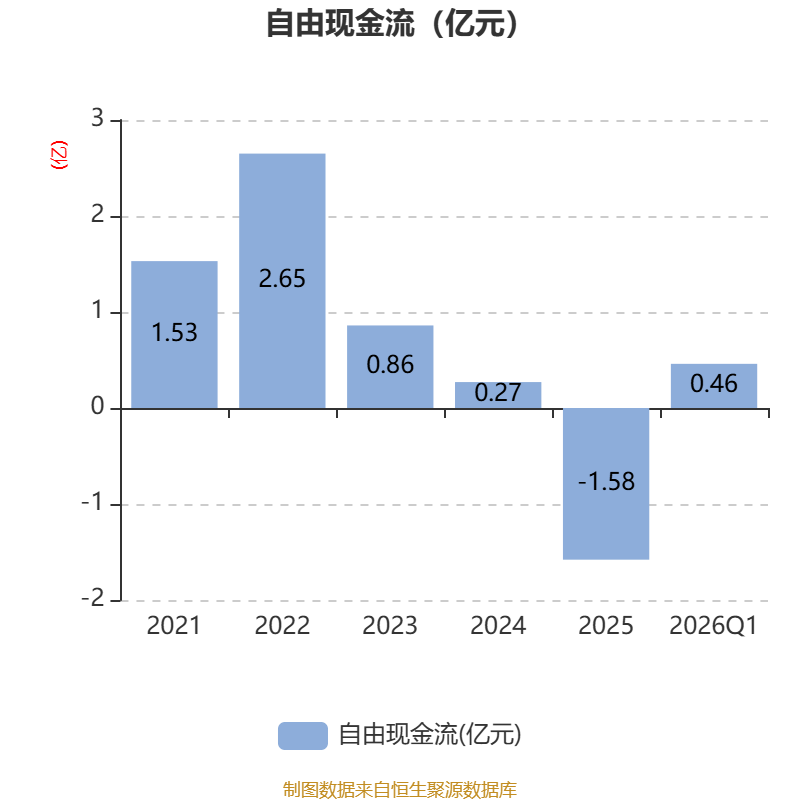 截至2026年一季度末,公司经营活动现金流净额为-1.62亿元,同比减少2.19亿元;筹资活动现金流净额8924.81万元,同比增加1.23亿元;投资活动现金流净额1.41亿元,上年同期为296.43万元。