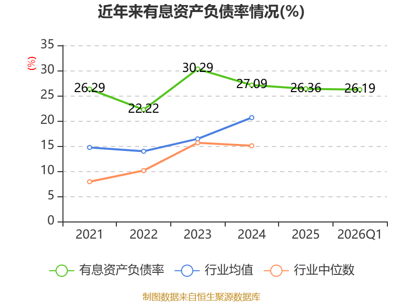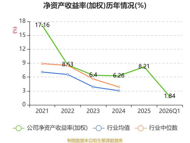 盈利能力方面, 2026年一季度公司加权平均净资产收益率为1.84%,同比下降0.04个百分点。公司2026年第一季度投入资本回报率为1.41%,较上年同期持平。