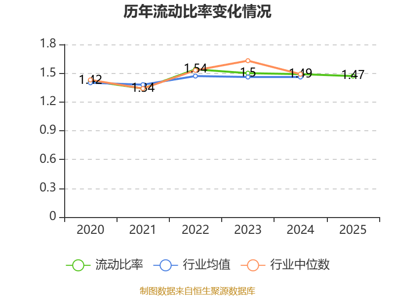 2025年,公司流动比率为1.47,速动比率为1.36。
