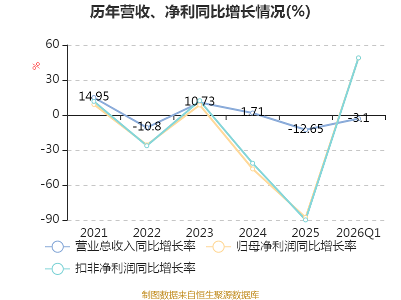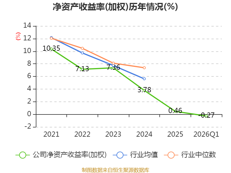 盈利能力方面, 2026年一季度公司加权平均净资产收益率为-0.27%,同比上升0.26个百分点。公司2026年第一季度投入资本回报率为-0.09%,较上年同期上升0.2个百分点。