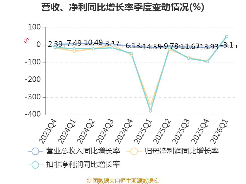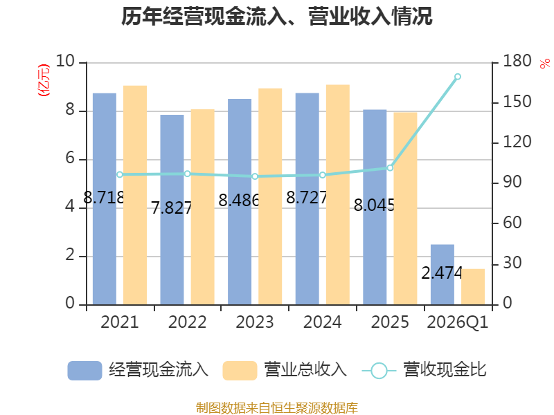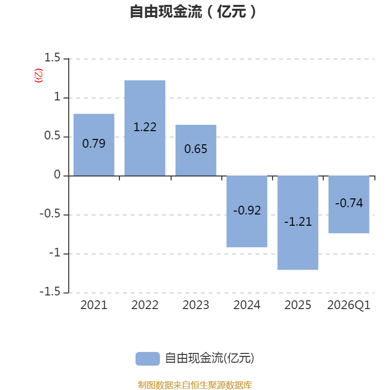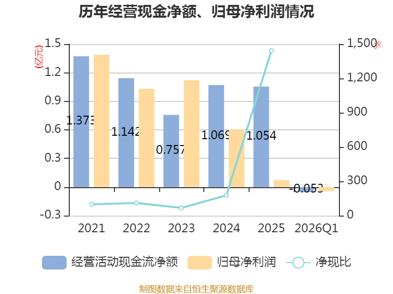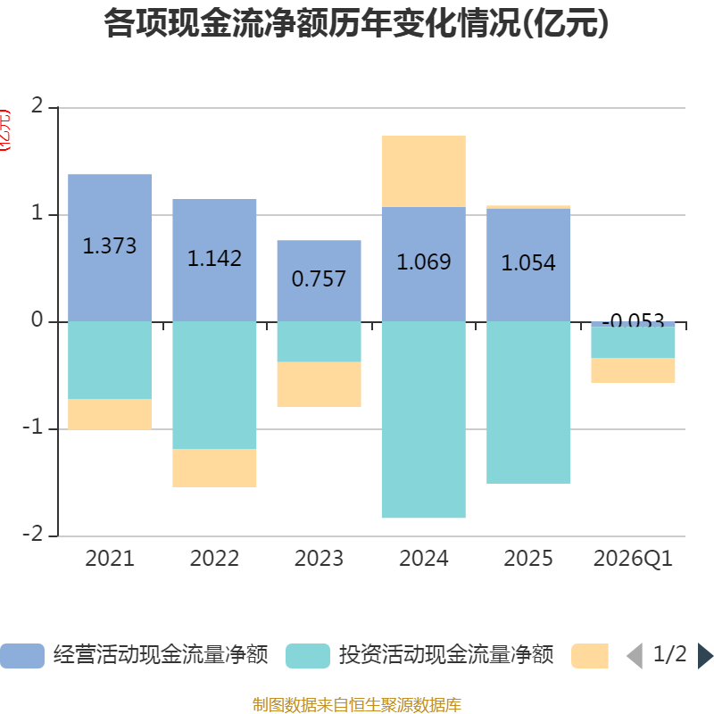 截至2026年一季度末,公司经营活动现金流净额为-533.32万元,同比增加1435.05万元;筹资活动现金流净额-2299.5万元,同比减少2810.04万元;投资活动现金流净额-2921.67万元,上年同期为-9739.65万元。