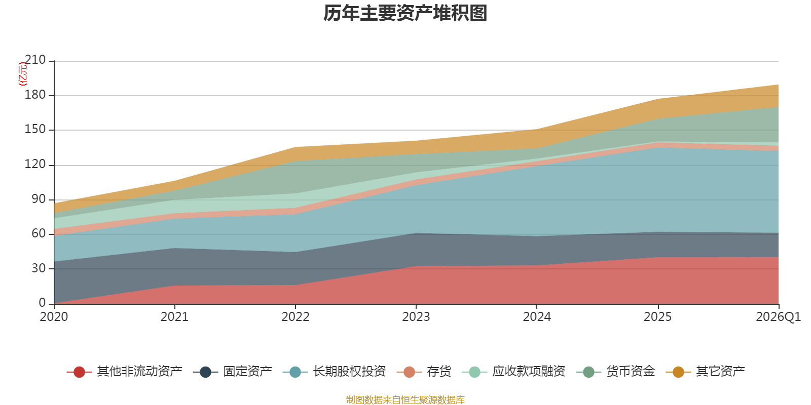 资产重大变化方面,截至2026年一季度末,公司货币资金较上年末增加55.51%,占公司总资产比重上升5.04个百分点;长期股权投资较上年末减少3.07%,占公司总资产比重下降3.91个百分点;其他非流动资产较上年末增加0.18%,占公司总资产比重下降1.46个百分点;固定资产较上年末减少3.71%,占公司总资产比重下降1.25个百分点。