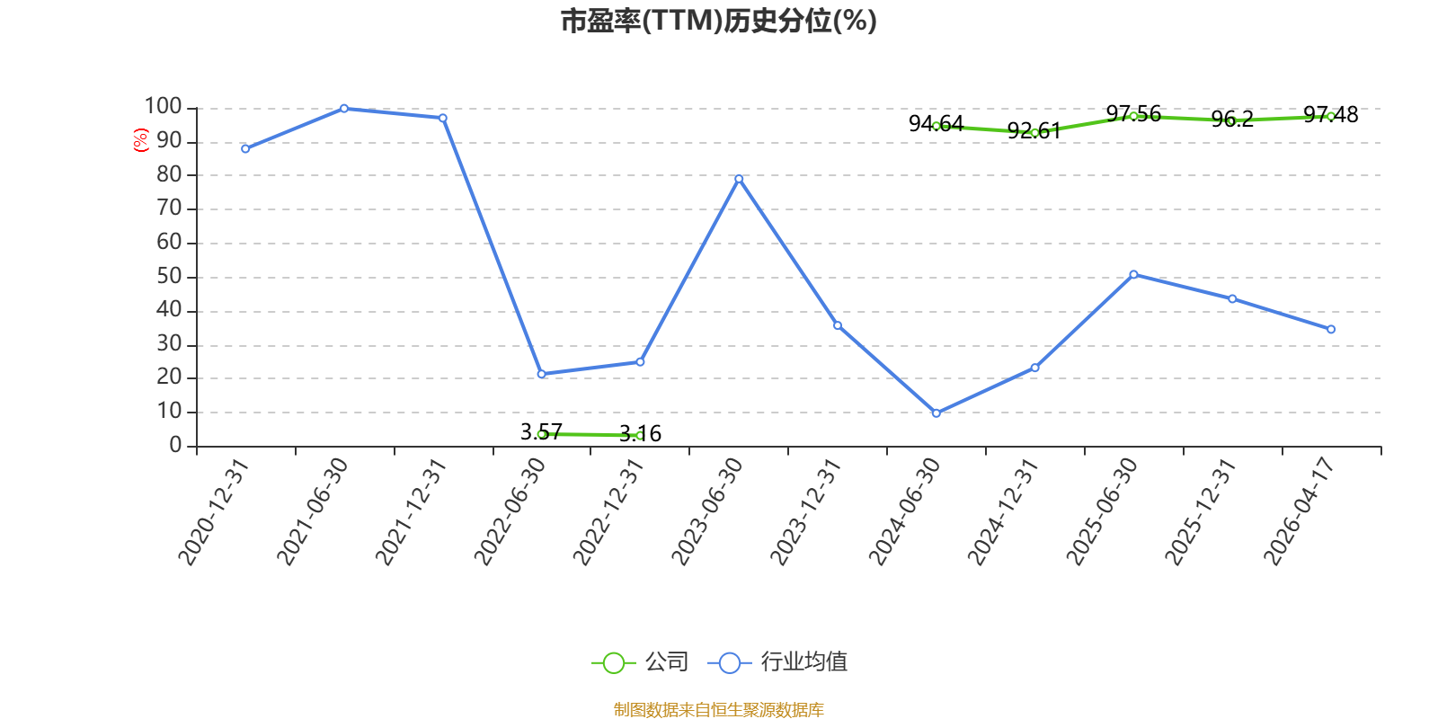 市盈率、市净率为负时,不显示当期分位数,会导致折线图中断。