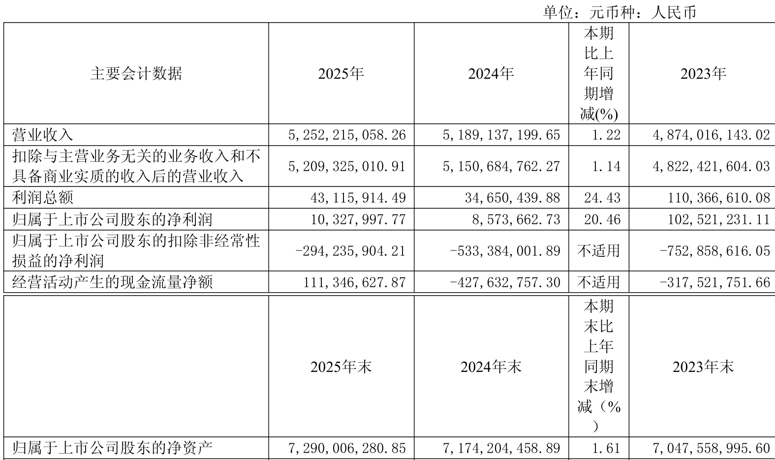 截至2025年,公司经营活动现金流净额为1.11亿元,同比增加5.39亿元;筹资活动现金流净额2.89亿元,同比增加1.14亿元;投资活动现金流净额-1.77亿元,上年同期为1.4亿元。
