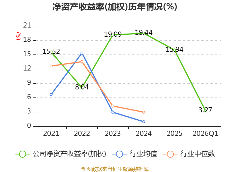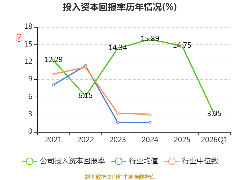 盈利能力方面, 2026年一季度公司加权平均净资产收益率为3.27%,同比下降0.56个百分点。公司2026年第一季度投入资本回报率为3.05%,较上年同期下降0.5个百分点。