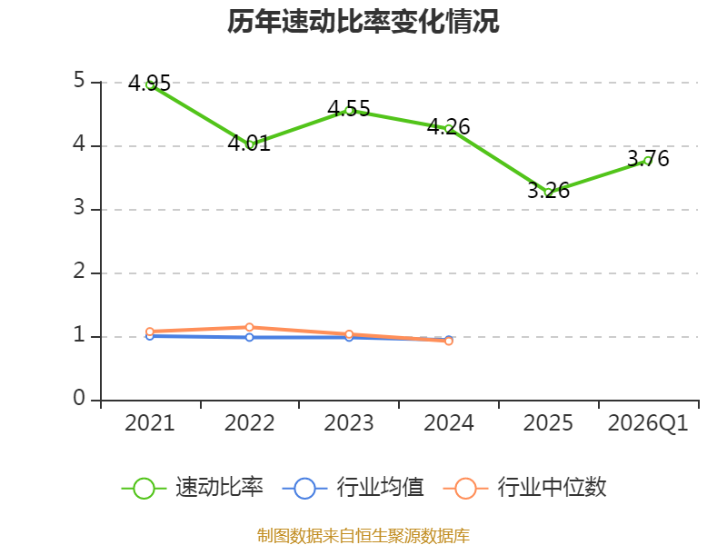 2026年第一季度,公司流动比率为4.88,速动比率为3.76。