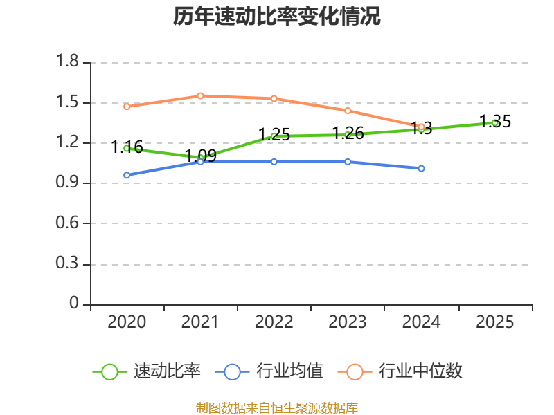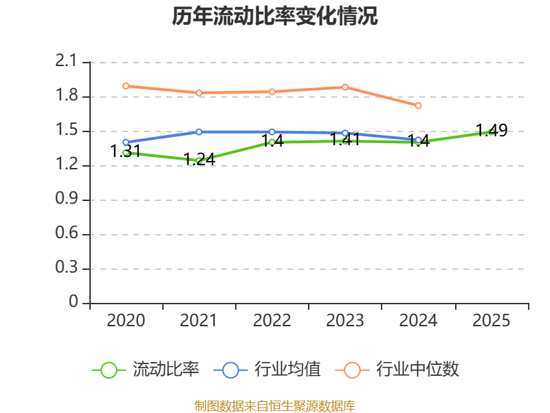 2025年,公司流动比率为1.49,速动比率为1.35。