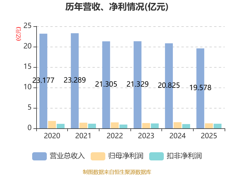中证智能财讯通程控股(000419)4月18日披露2025年年度报告。2025年,公司实现营业总收入19.58亿元,同比下降5.99%;归母净利润1.23亿元,同比下降18.17%;扣非净利润1.13亿元,同比增长8.33%;经营活动产生的现金流量净额为6514.41万元,同比下降59.38%;报告期内,通程控股基本每股收益为0.2262元,加权平均净资产收益率为3.59%。公司2025年度分配预案为:拟向全体股东每10股派现1.3元(含税)。