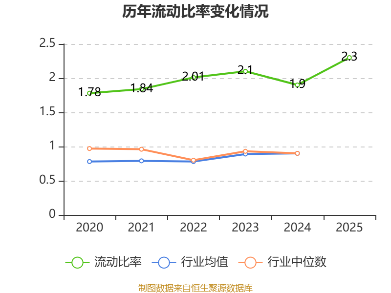 2025年,公司流动比率为2.3,速动比率为2.13。