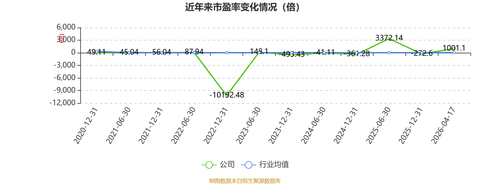 市盈率、市净率为负时,不显示当期分位数,会导致折线图中断。