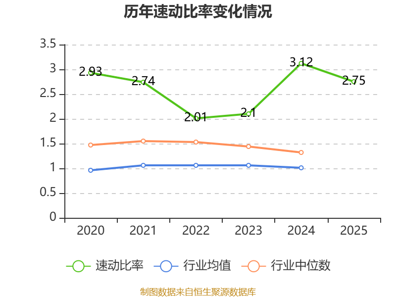 2025年,公司流动比率为3.7,速动比率为2.75。
