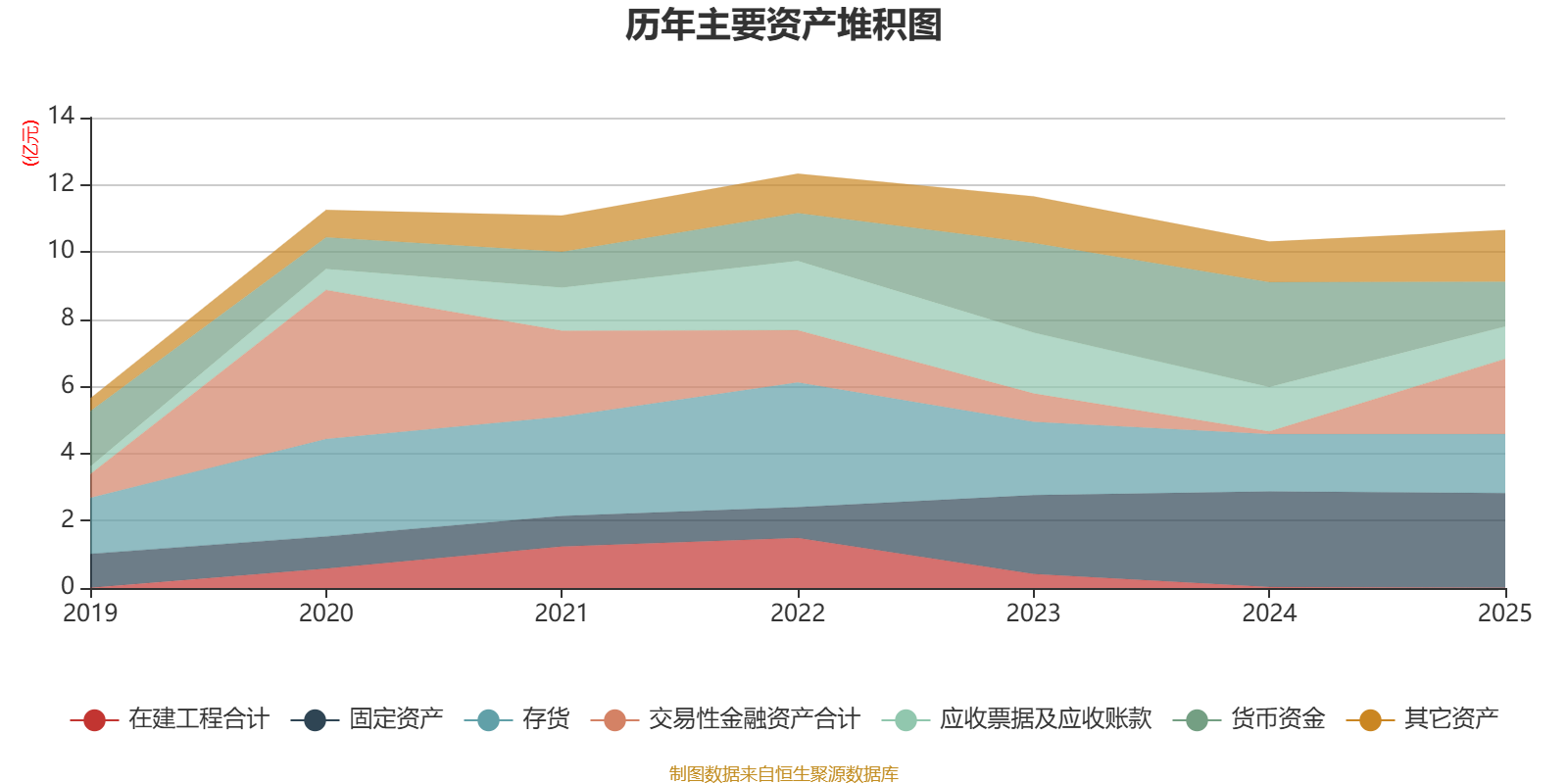 资产重大变化方面,截至2025年末,公司交易性金融资产合计较上年末增加2668.83%,占公司总资产比重上升20.27个百分点;货币资金较上年末减少57.37%,占公司总资产比重下降17.82个百分点;应收票据及应收账款较上年末减少27.07%,占公司总资产比重下降3.77个百分点;一年内到期的非流动资产较上年末增加286.48%,占公司总资产比重上升2.84个百分点。