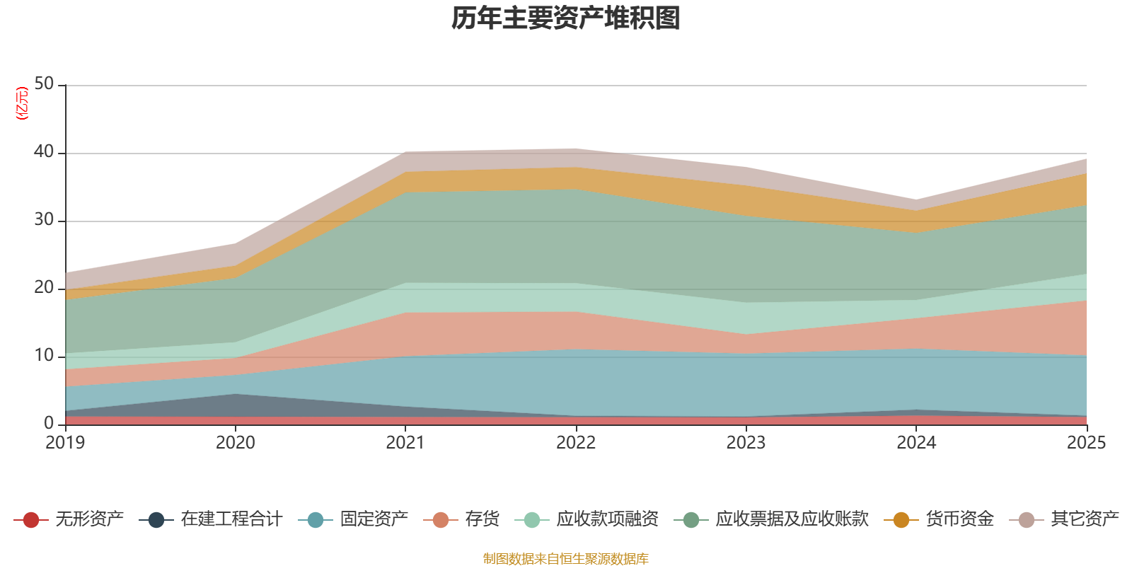 负债重大变化方面,截至2025年末,公司应付票据及应付账款较上年末增加66.38%,占公司总资产比重上升11.46个百分点;一年内到期的非流动负债较上年末减少100%,占公司总资产比重下降5.49个百分点;短期借款较上年末增加62.06%,占公司总资产比重上升1.71个百分点;其他流动负债较上年末增加367.34%,占公司总资产比重上升1.26个百分点。