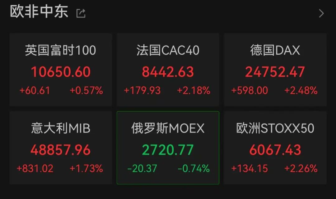 欧股涨幅持续扩大,多国股指涨超2%。