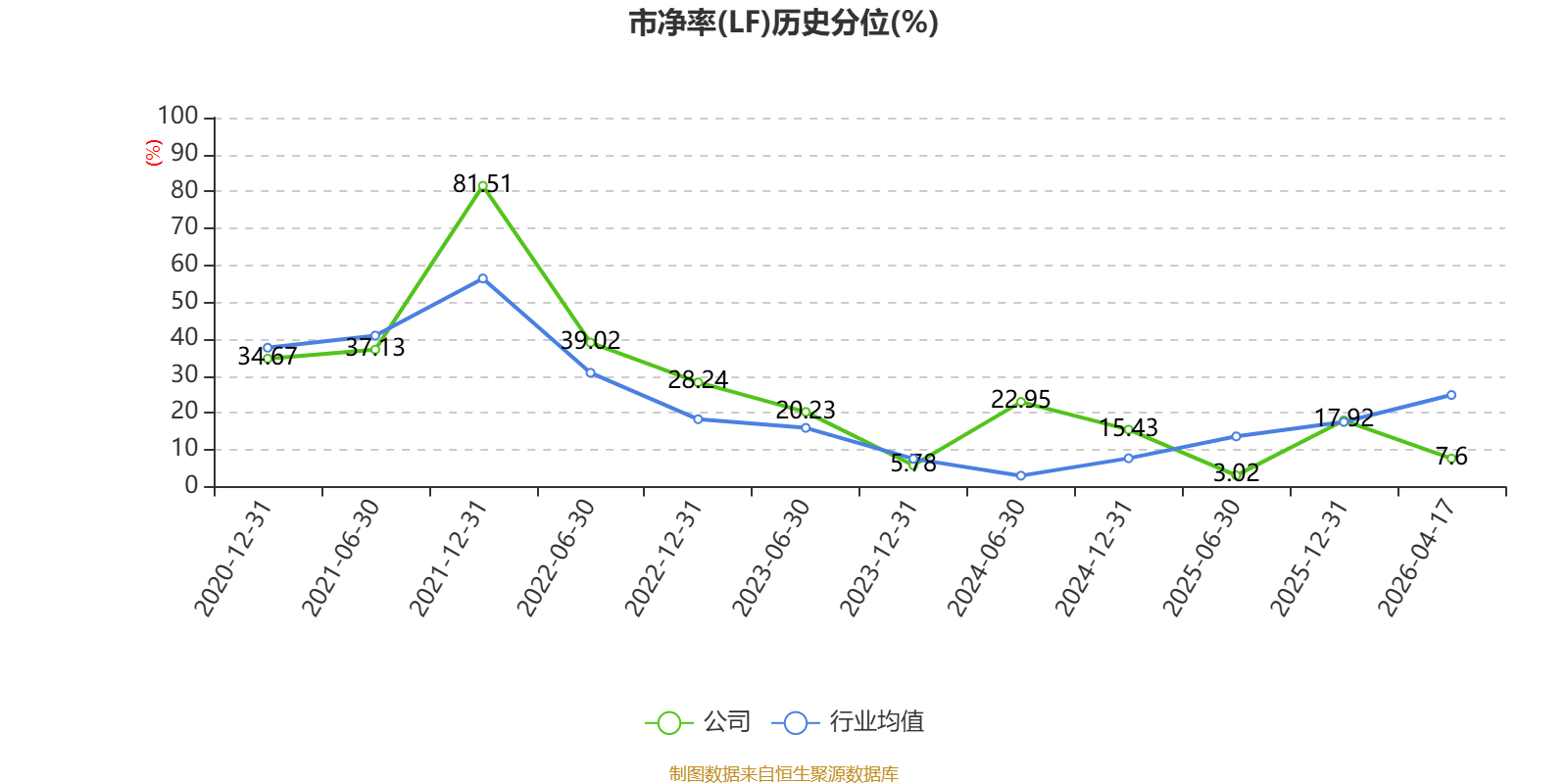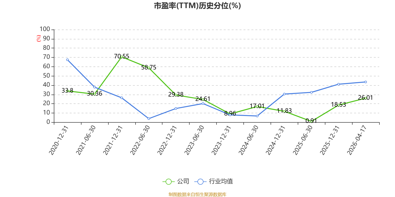 市盈率、市净率为负时,不显示当期分位数,会导致折线图中断。