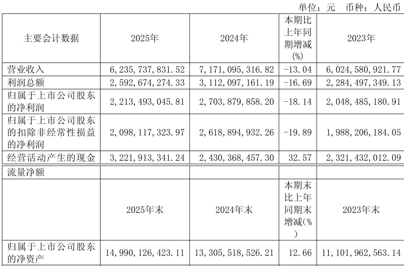 中证智能财讯伟明环保(603568)4月18日披露2025年年度报告。2025年,公司实现营业总收入62.36亿元,同比下降13.04%;归母净利润22.13亿元,同比下降18.14%;扣非净利润20.98亿元,同比下降19.89%;经营活动产生的现金流量净额为32.22亿元,同比增长32.57%;报告期内,伟明环保基本每股收益为1.31元,加权平均净资产收益率为15.72%。公司2025年度分配预案为:拟向全体股东每10股转2股,派现6元(含税)。