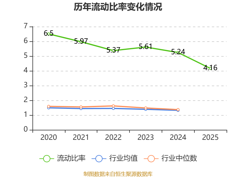 2025年,公司流动比率为4.16,速动比率为3.26。