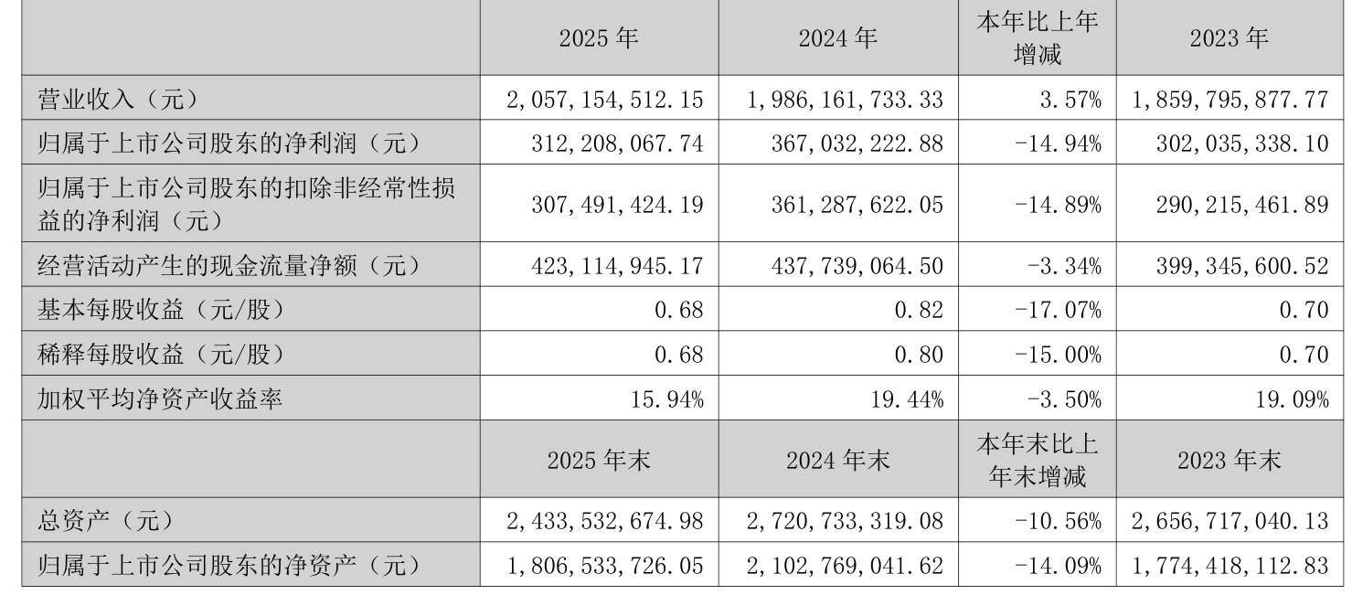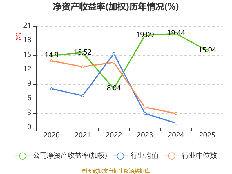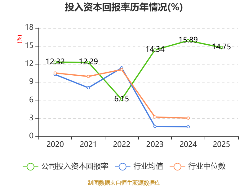 数据显示,2025年公司加权平均净资产收益率为15.94%,较上年同期下降3.5个百分点。公司2025年投入资本回报率为14.75%,较上年同期下降1.14个百分点。