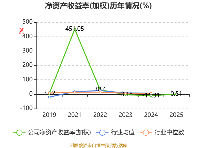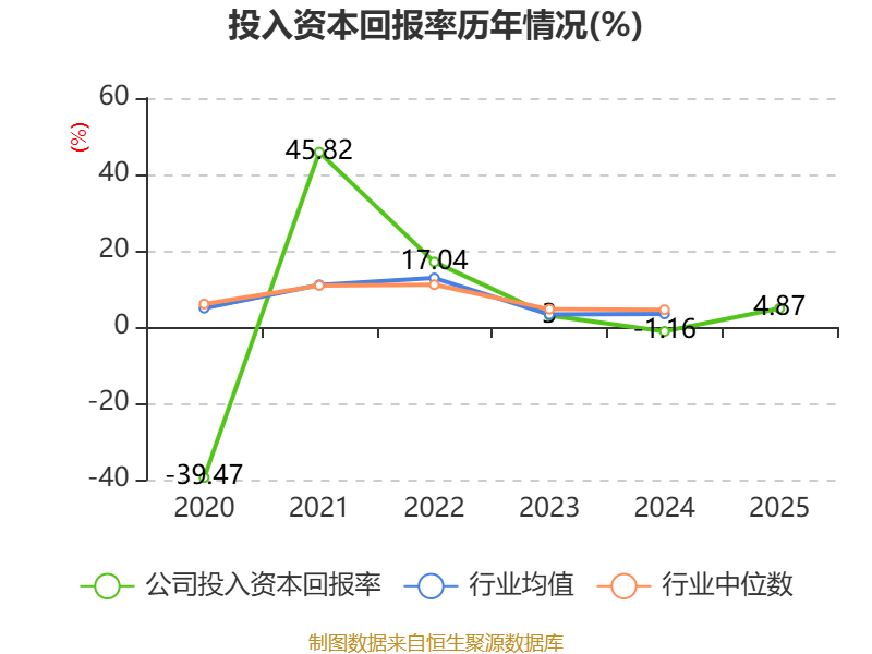 数据显示,2025年公司加权平均净资产收益率为0.51%,较上年同期上升11.82个百分点。公司2025年投入资本回报率为4.87%,较上年同期上升6.03个百分点。