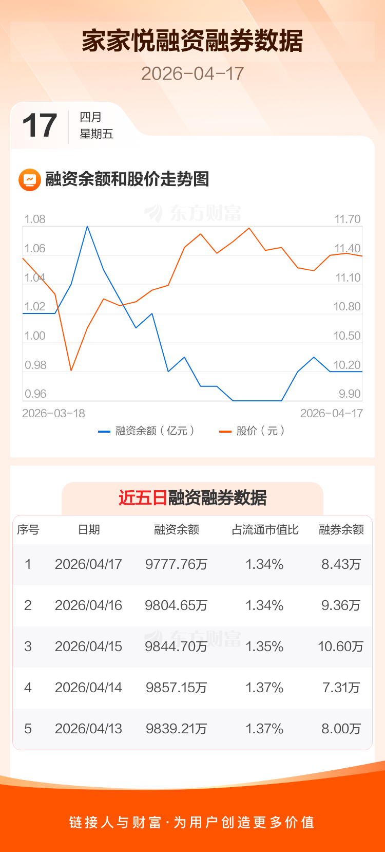 交易所最新数据显示,家家悦于2026年4月17日获融资买入346.15万元,融资偿还373.03万元,当日融资净偿还26.88万元。目前,该股融资余额9777.76万,占流通市值比例为1.34%。
