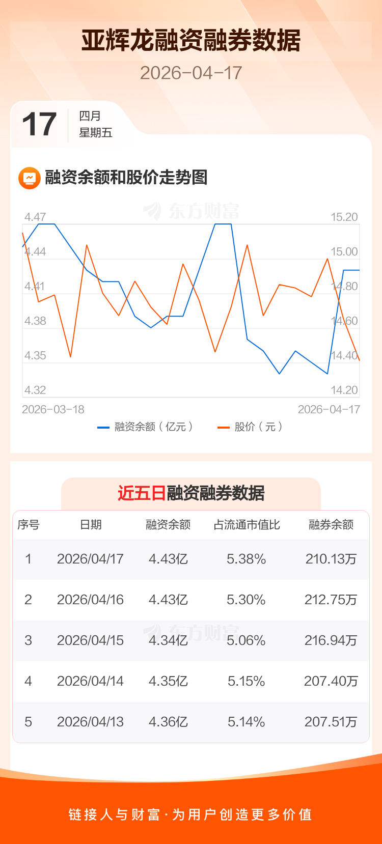 交易所最新数据显示,亚辉龙于2026年4月17日获融资买入522.38万元,融资偿还549.01万元,当日融资净偿还26.63万元。目前,该股融资余额4.43亿,占流通市值比例为5.38%。