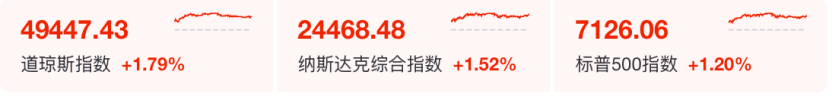 美股周五高开高走,截至收盘,道指收涨1.79%,标普500指数涨1.2%,纳指涨1.52%。