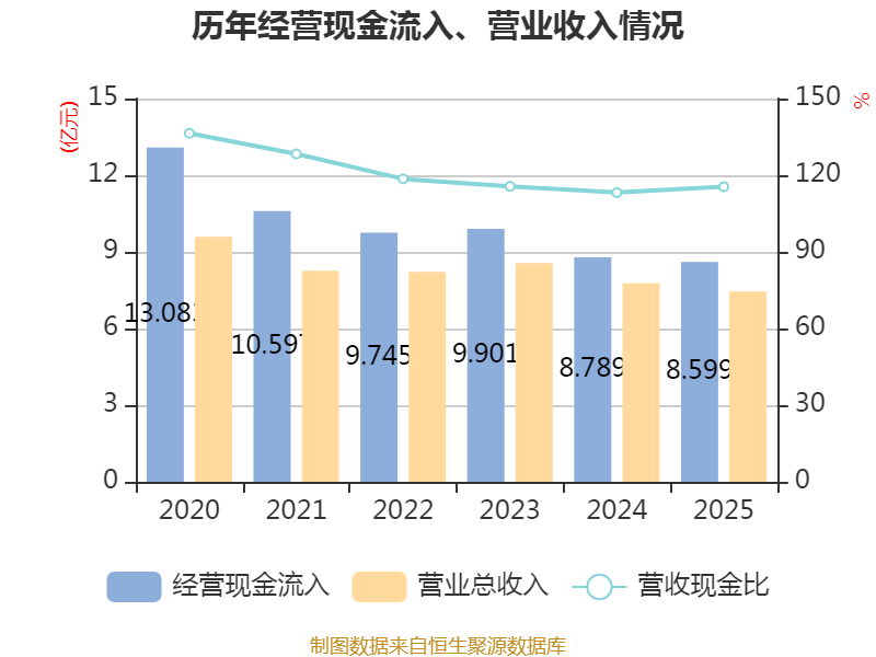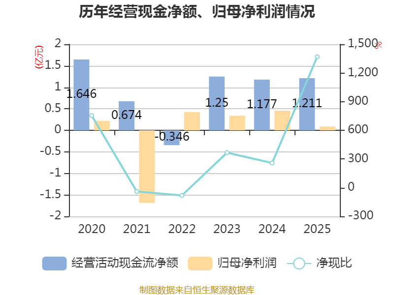 截至2025年,公司经营活动现金流净额为1.21亿元,同比增长2.87%;筹资活动现金流净额-8098.23万元,同比减少5463.87万元;投资活动现金流净额858.66万元,上年同期为-3480.89万元。