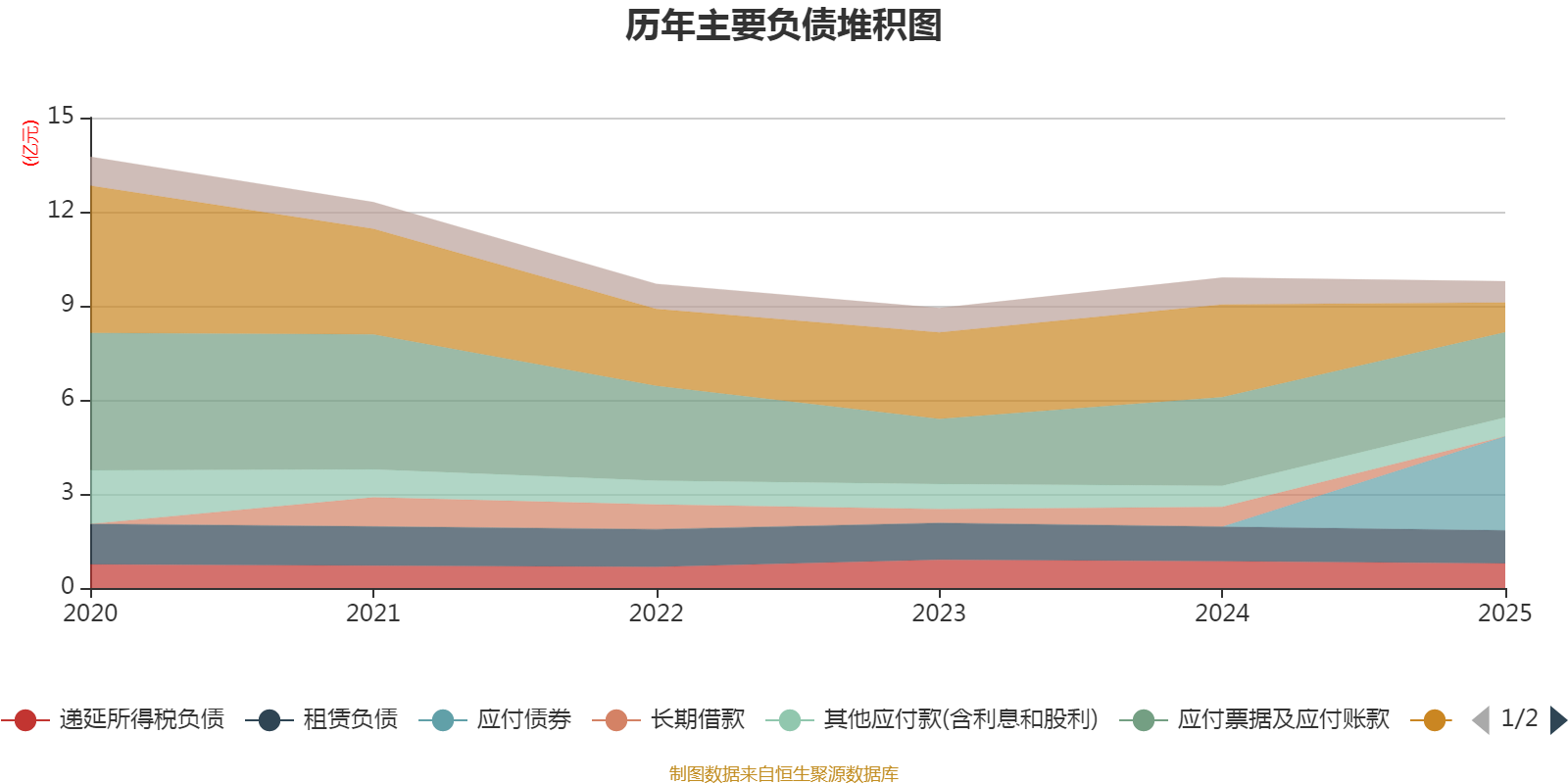 负债重大变化方面,截至2025年末,公司应付债券占公司总资产的16.79%,上年末为0;短期借款较上年末减少67.8%,占公司总资产比重下降11.02个百分点;长期借款较上年末减少100%,占公司总资产比重下降3.49个百分点;一年内到期的非流动负债较上年末减少44.37%,占公司总资产比重下降0.54个百分点。