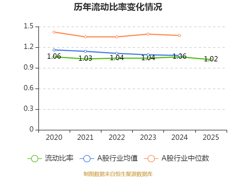 2025年,公司流动比率为1.02,速动比率为1.02。