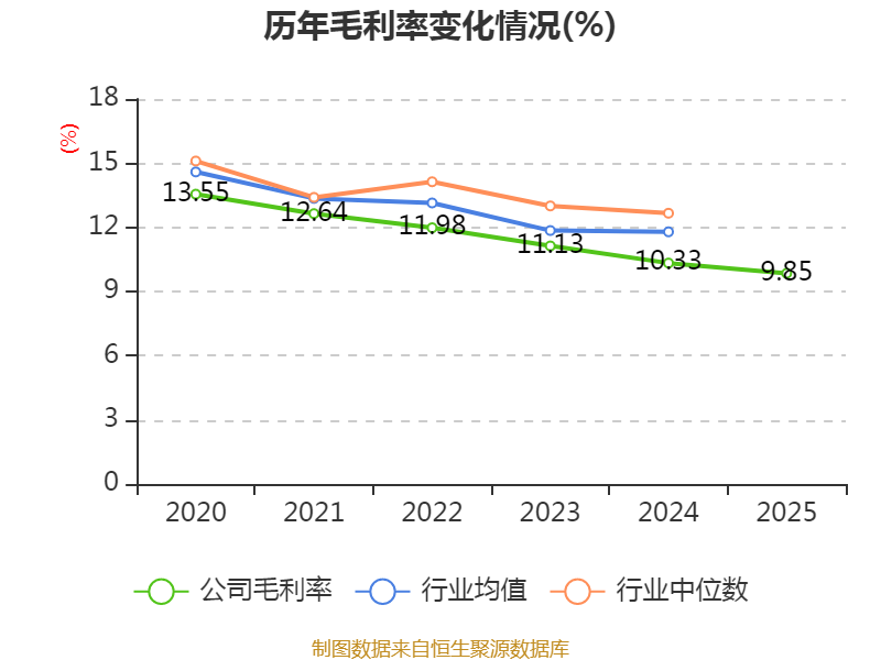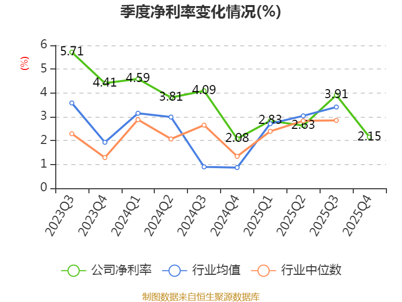 数据显示,2025年公司加权平均净资产收益率为6.46%,较上年同期下降1.81个百分点。公司2025年投入资本回报率为4.75%,较上年同期下降1.49个百分点。