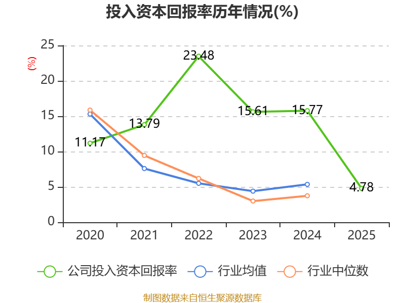 数据显示,2025年公司加权平均净资产收益率为4.66%,较上年同期下降13.48个百分点。公司2025年投入资本回报率为4.78%,较上年同期下降10.99个百分点。