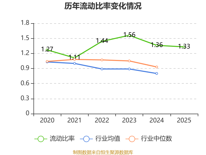2025年,公司流动比率为1.33,速动比率为1.14。