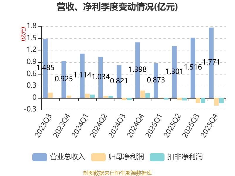中证智能财讯欧莱新材(688530)4月18日披露2025年年度报告。2025年,公司实现营业总收入5.46亿元,同比增长25.04%;归母净利润亏损4002.79万元,上年同期盈利2816.93万元;扣非净利润亏损3841.06万元,上年同期盈利1860.1万元;经营活动产生的现金流量净额为-5639.9万元,上年同期为-6031.83万元;报告期内,欧莱新材基本每股收益为-0.25元,加权平均净资产收益率为-4.81%。