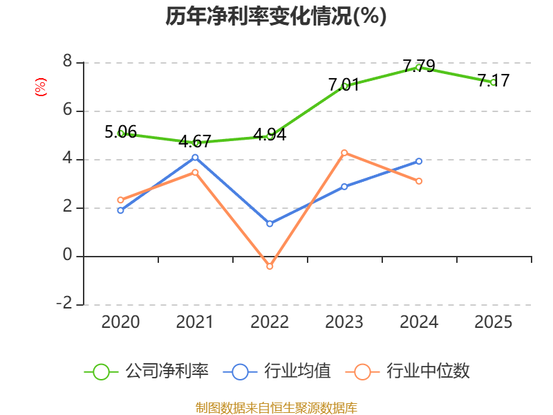 数据显示,2025年公司加权平均净资产收益率为13.6%,较上年同期下降5.02个百分点。公司2025年投入资本回报率为7.95%,较上年同期下降2.71个百分点。