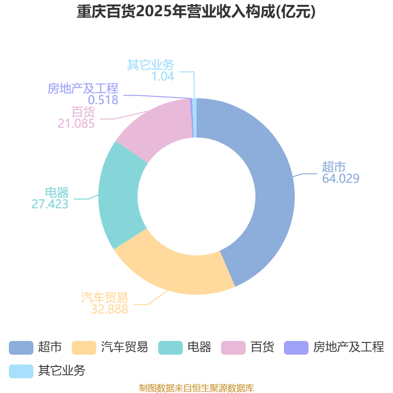 中证智能财讯重庆百货(600729)4月18日披露2025年年度报告。2025年,公司实现营业总收入146.98亿元,同比下降14.24%;归母净利润10.45亿元,同比下降20.48%;扣非净利润10.06亿元,同比下降18.03%;经营活动产生的现金流量净额为18.08亿元,同比下降10.65%;报告期内,重庆百货基本每股收益为2.38元,加权平均净资产收益率为13.60%。公司2025年度分配预案为:拟向全体股东每10股派现7.91元(含税)。