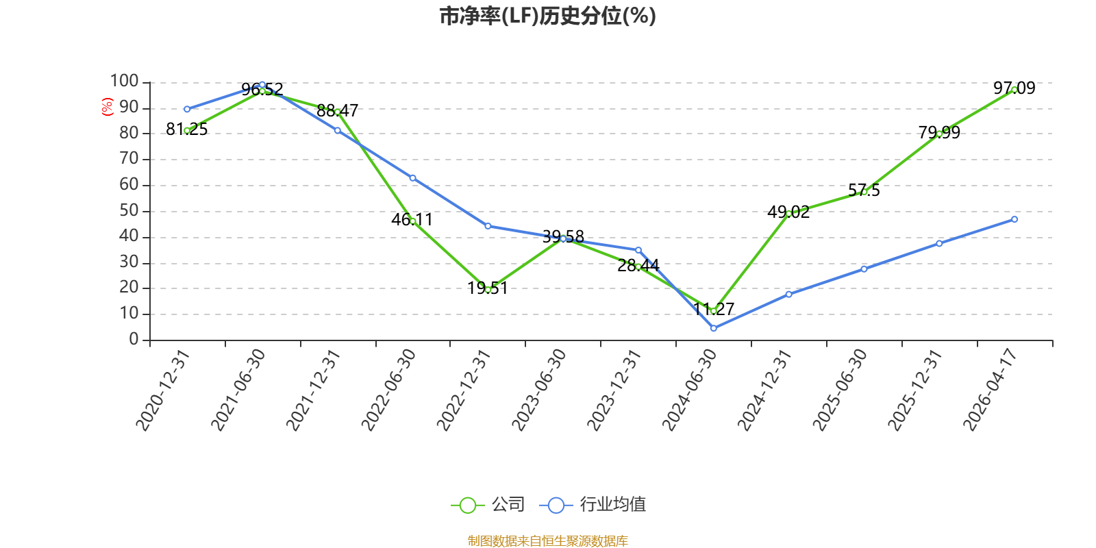 市盈率、市净率为负时,不显示当期分位数,会导致折线图中断。