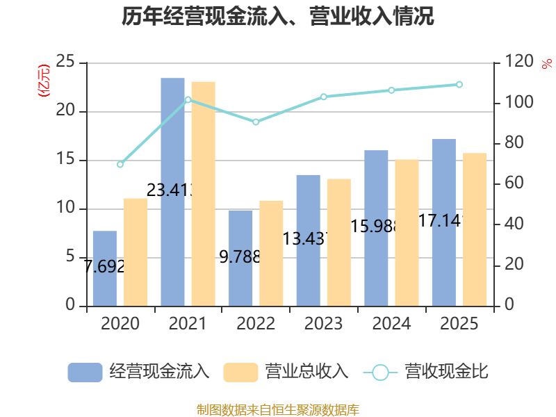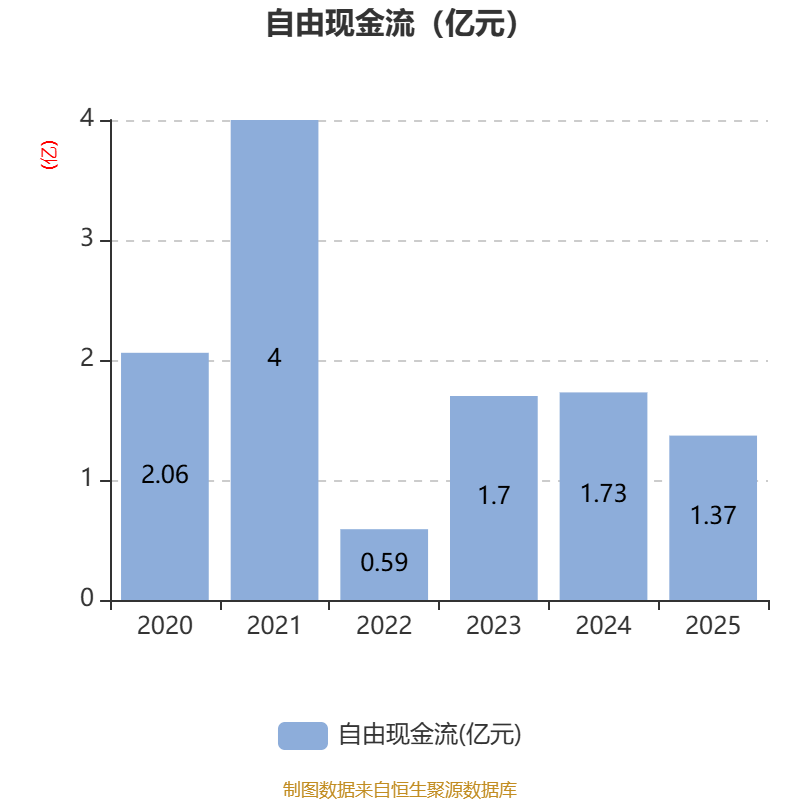 截至2025年,公司经营活动现金流净额为1.8亿元,同比下降36.86%;筹资活动现金流净额-2.38亿元,同比增加3959.94万元;投资活动现金流净额-5148.81万元,上年同期为2190.5万元。