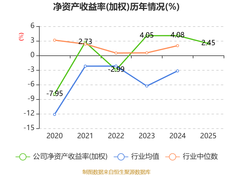 数据显示,2025年公司加权平均净资产收益率为2.45%,较上年同期下降1.63个百分点。公司2025年投入资本回报率为2.4%,较上年同期下降1.49个百分点。